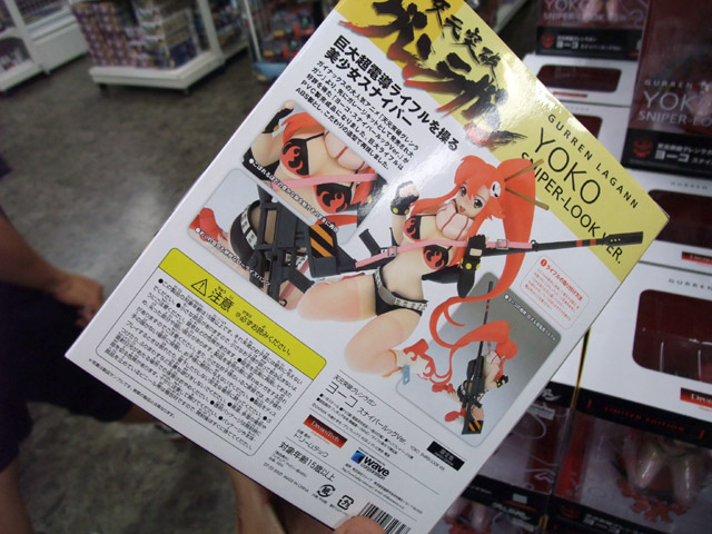 ワンフェス2008夏の記事作成のため、用事でアキバには行っていたものの、8月3日~6日はアキバ巡回をお休みしてました。その間にアキバで発売されていたものや、7日に発売されていたもの等をまとめて。画像はスーパーモデラーズで販売開始していた、ウェーブのワンフェス限定「天元突破グレンラガン ヨーコ・スナイパールックVer.」(サンプルレビュー)。