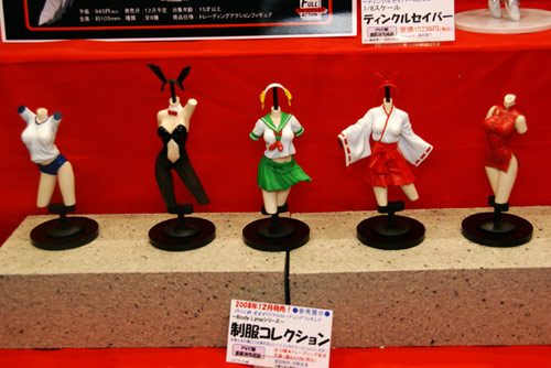 2008年8月3日に開催されたワンフェス2008夏での、いままでお伝えした以外の様々なメーカーブースの様子を7回に分けてお伝えします。こちらでは、アトリエ彩、アゾン、キャラアニの全3ブースの様子をお伝えします。画像は「涼宮ハルヒの憂鬱 涼宮ハルヒ 制服Ver. キャラアニ限定版」(CA)のサンプル展示の様子。他、アゾンではちっちゃい上司ドールのサンプルが。