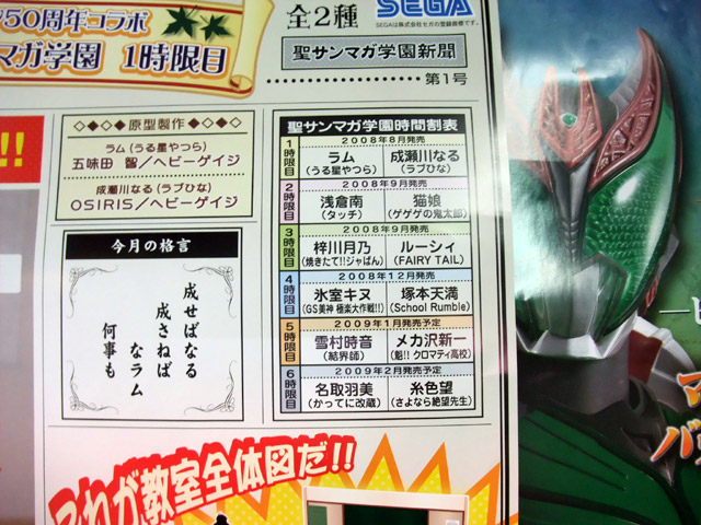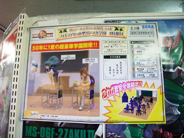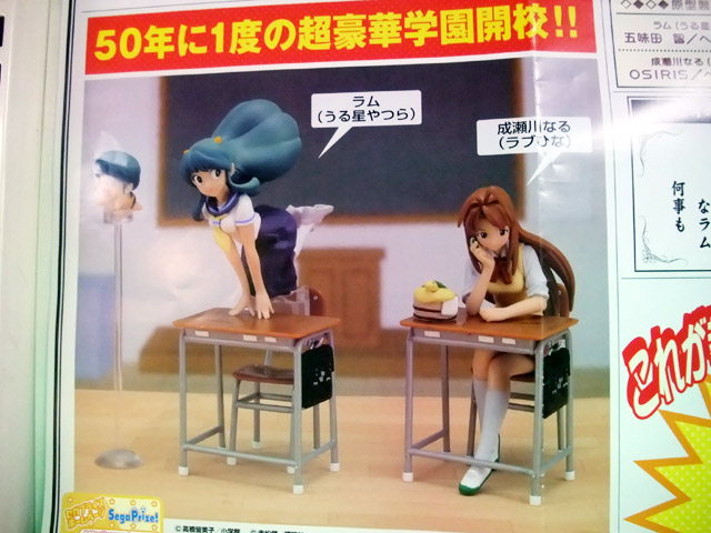 セガプライズにて開校!「週刊少年サンデー」と「週刊少年マガジン」の両誌のキャラクターが大集結。続々登場する予定のフィギュアを集めると夢の教室ジオラマが完成します。1時限目では、「うる星やつら」のラムと「ラブひな」の成瀬川なるが登場します。