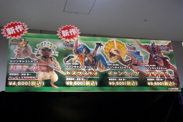 2008年8月3日に開催されたワンフェス2008夏での、いままでお伝えした以外の様々なメーカーブースの様子を7回に分けてお伝えします。こちらでは、ムービック、アートロード、ニューライン、アミエ・グランの全4ブースの様子をお伝えします。画像はアートロードの「MONSTER HUNTER PORTABLE 2nd G お供アイルー」の作例展示の様子。