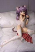 フォー・リーヴスが贈る 『萌えるフィギュア』!大人気恋愛シミュレーションゲーム 「ToHeart2 AnotherDays」 より、菜々子ちゃんが『あの』コスチュームで立体化!ネコ耳&しっぽ、スクール水着、ニーソックス(絶対領域)、幼児体型・・・と、ふんだんに詰め込まれた萌え要素に加え、恥じらいの表情、脱ぎかけのスカート、寝姿・・・というたまらないシチュエーションの劇中イラストを再現いたしました!ベースにはクッション素材を使い、まるでベッドの上のような臨場感を表現いたしました。首にはラフ設定に描かれていた “首輪” を追加造型し、よりフェティッシュな感じに仕上げています!スカートは取り外し可能!