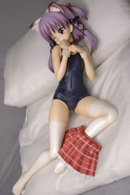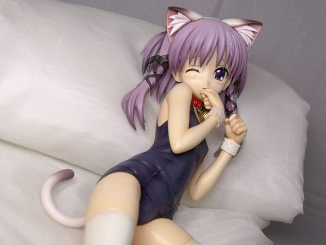 コトブキヤショップ限定「ToHeart2 AnotherDays 菜々子-ネコ耳スクール水着Ver. 黒猫版」(RA)のサンプルレビューです。これは、「菜々子-ネコ耳スクール水着Ver.」(AM)(参考レビュー)のスク水部分を、王道の紺スク仕様にしたカラバリとなるものです。猫耳も劇中通りに色が逆になっているのが芸コマw ぬれた感じに鈍く光る紺スク越しのケツも捨てがたいですよ!w