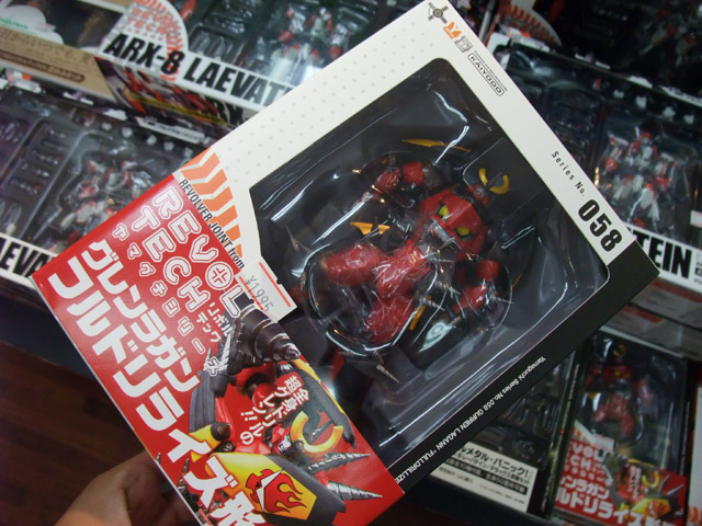 8月15日はお盆となるので、いつもより少し早めの8月13日に、海洋堂 リボルテックヤマグチ「No.58 グレンラガン フルドリルライズ形態」(AA)と「No.59 ARX-8 レーバテイン」(AA)の2種がアキバで発売されていました。