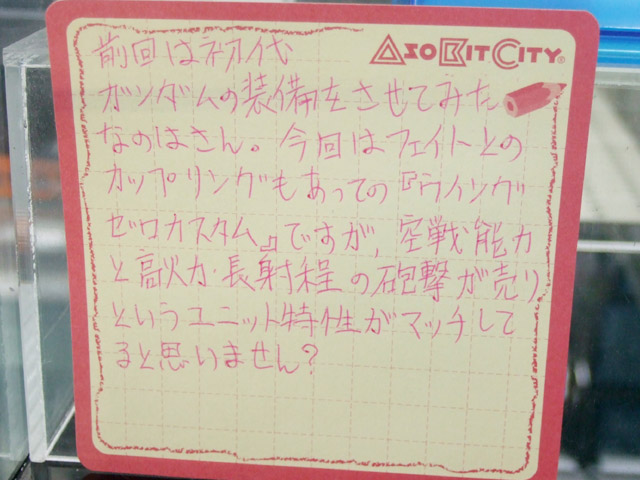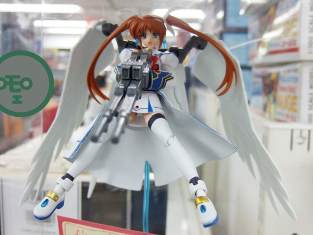 以前、「管理局の白い悪魔(なのは)」が連邦の白い悪魔の装備でテイクオフしていたキャラシティ2Fにて、POPに「ホビーに境界線など無い!美少女フィギュアにガンプラの武器を持たせる様な楽しみ方も”アリ”だと思いませんか?そんな訳で試しに幾つか造ってみました。」という、figmaにガンプラパーツをあわせた展示がありました。「なのはウイングゼロ」違和感なさすぎw
