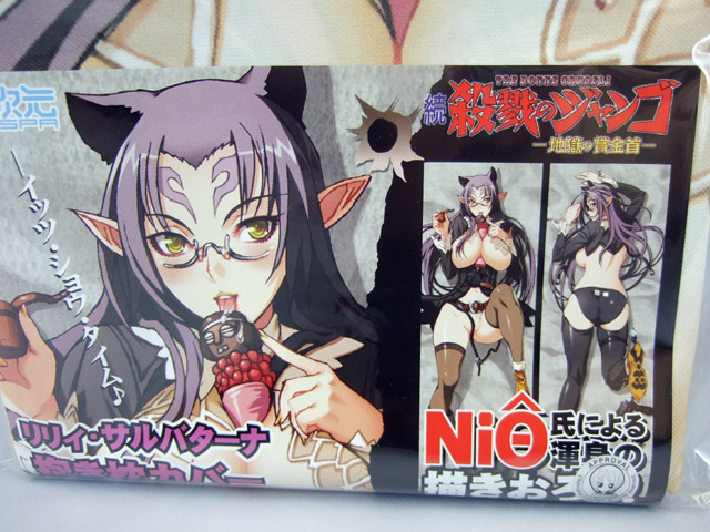 8月15~17日に開催のコミックマーケット74のGEE!STOREブースにて、コスパ「続・殺戮のジャンゴ リリィ・サルバターナ抱き枕カバー」(AA)が先行販売されていたのでゲットしてきました!コミケ73で先行販売された「名前のない女 抱き枕カバー」同様、NiΘ(にしー)氏描き下ろしイラストを両面にあしらったもので、表面では乳に挟んだ棒状のものを舐めていました!w