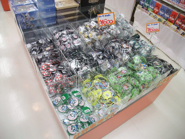コミケ74の初日となった8月15日、とらのあな本店5Fにて、ピンクカンパニー/パルテノンプロダクションの「東方グッズ」(AM)が大量に入荷していました。画像「東方SDキーチェーン第4弾 魔理沙」(AM)。他、アキバのいくつかの店舗で、グッスマ「ToLOVEる ララ」(AA)、figma「柊つかさ」(AA)、「遠坂凛」(AA)等の新作フィギュアのサンプル展示が開始していました。