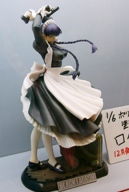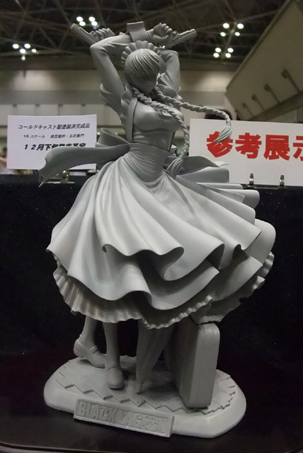8月15~17日に開催のコミックマーケット74月刊サンデーGXブースでは、ニューライン「BLACK LAGOON ロベルタ」の彩色サンプルが展示されていました。これは、「BLACK LAGOON」のキャラ「ロベルタ」をコールドキャスト完成品として立体化するもの。ワンフェス2008夏ではまだ未彩色サンプルだったので、彩色サンプル展示はおそらく初かなと。