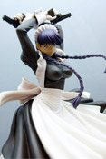 第3期となる新作アニメの製作も決定し、未だに熱狂的なファンに支持され続けるハードボイルド・コミック「ブラックラグーン」。昨年大好評をいただいた「レヴィ」に続く”BLACK LAGOON スタチュー”弟2弾として、レヴィのライバルで元・女テロリストの最強メイド「ロベルタ」が遂に登場します。原型製作は前作に引き続き五右衛門氏が担当。原作コミック第6巻の表紙を飾ったロベルタを、躍動感溢れる姿で立体化しました。本体のみならず付属の仕込み銃やスーツケース、そして雰囲気たっぷりの銘板入ジオラマベース等にいたるまで、その凝った作り込みにご注目!