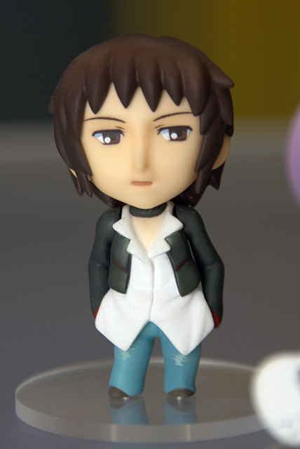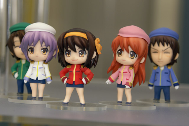 2008年8月6日に開催された、’08夏ホビーメーカー合同流通向け展示会のグッスマブースでは、グッドスマイルカンパニー「ねんどろいど ぷち 涼宮ハルヒの憂鬱#03」(AM)のサンプルが展示されていました。今回は「ハルヒの激奏」と「射手座の日」でのコスをきたSOS団の5人で、古泉は初のねんどろいどぷち化。他、シークレットも後ろ向きですが展示されていましたw