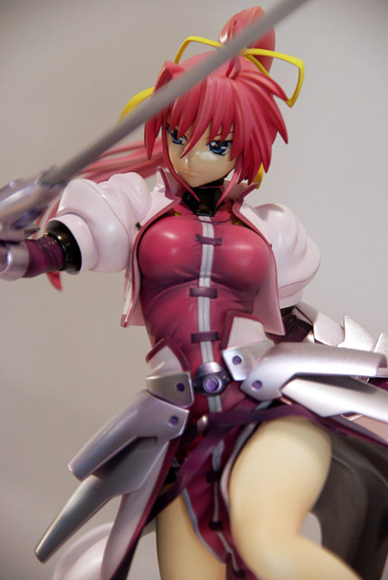人気アニメシリーズ3作目「魔法少女リリカルなのはStrikerS」より、剣の騎士”シグナム”が登場。「ヴォルケンリッター」の将であり、真面目な性格で部下からは厳しい上司として見られることが多いが、思いやりのある面も持つ彼女。炎の魔剣「レヴァンティン」を構え、勇ましくも華麗に舞う躍動感あふれるポージングで立体化です。風になびくスカートやピンク色の鮮やかなバリアジャケットが強さと上品さを感じさせます。髪や身体の流れが美しく、デバイス類をはじめ細部も充実した仕上がりです。