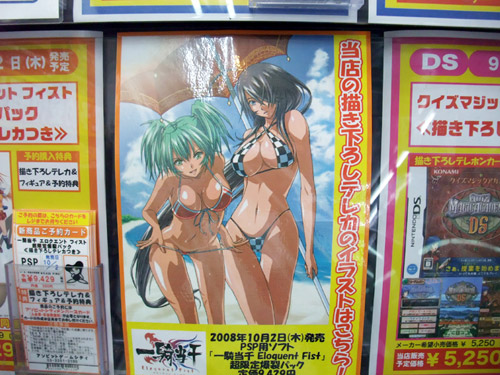 10月2日発売予定のPSP「一騎当千 Eloquent Fist 超限定爆裂パック」(BA)ですが、ゲーマーズ本店にて、ショップ特典テレカイラストの絵柄が公開されています。イラストは、呂蒙と関羽が、POPによると「闘う女が2人。肩を寄せ合い、体を密着させて微笑む一瞬。」という、ほぼパンツ一丁でスージーさん見せつけポーズとなっていました!w エロス!w