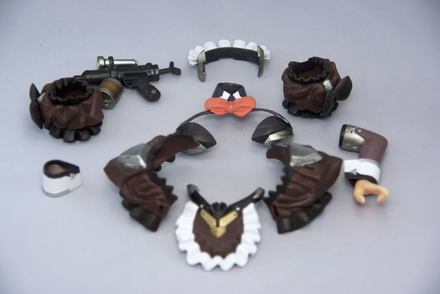 別売りの盾ちゃん付属のレポマンガによると、鉛筆で書きなぐったような目を再現するために、わざわざマスクを作ってかすめた塗料で再現したくらい、こちらも気合の入った出来w