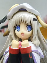 TVアニメーション版も大好評の『CLANNAD』を生み出したPCゲームメーカー”Key”により、2007年に生まれた名作『リトルバスターズ!』。新たなヒロインとビジュアルが追加されるオトナ版、『リトルバスターズ!エクスタシー』の発売が発表され、益々加速度を増す本作より、祖父がロシア人のクォーターの、えきぞちっく(自称)なマスコットヒロイン「能美クドリャフカ」を、子犬のように好奇の目で見つめてくる一瞬を立体化いたしました。衣装のマントと帽子は着脱可能で、室内などで見せる軽装状態を再現できます。 また、犬耳付き帽子と尻尾も付属。犬好きなあまり、自身が犬になっちゃいます。