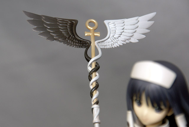 手に持った杖の翼の装飾なども、とても繊細な造形です。
