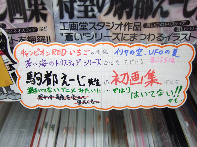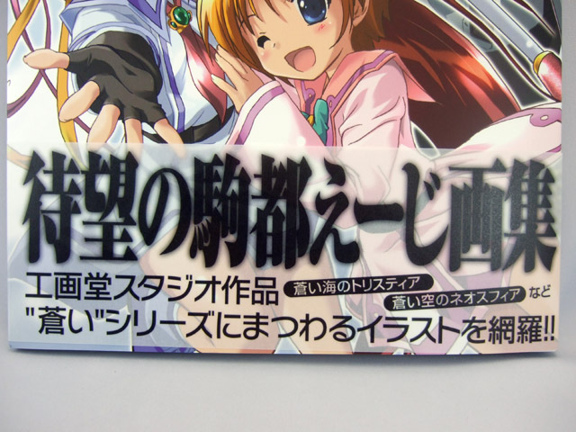 8月21日、画集「駒都えーじ画集@工画堂スタジオ」(AA)が発売されました。これは、とらのPOPによると『チャンピオンREDいちごの表紙、イリヤの空、UFOの夏、まぶらほ、蒼い海のトリスティアシリーズなどをてがける、駒都えーじ先生の初画集デスヨ』というものです。内容は文字通り、工画堂スタジオ作品中心。ちなみに付属のピンナップでは、前が破れた白スクなんかもw
