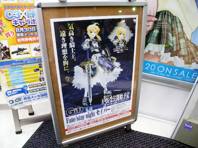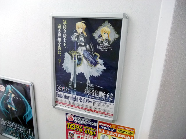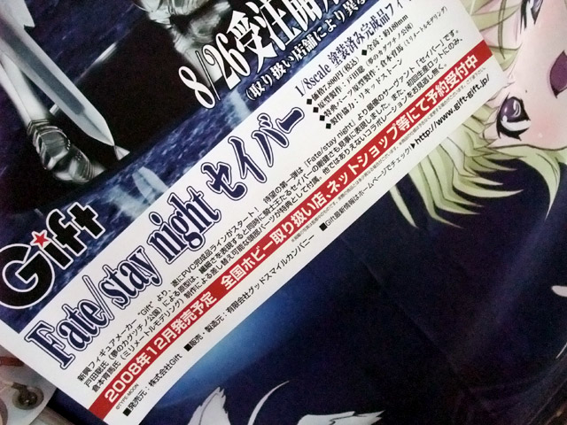 8月22日、Gift「Fate/stay night セイバー」の告知ポスターがアキバのいくつかの店舗で掲示開始していました。