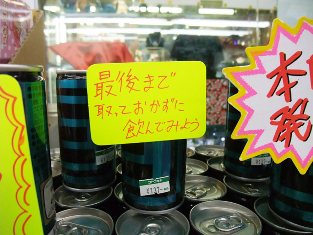 掲示されたPOP類には、エアーマンが倒せないの歌詞にある「E缶だけは最後まで取っておく!」と書かれていましたが、他のPOPでは「最後まで取っておかずに飲んでみよう」とも。