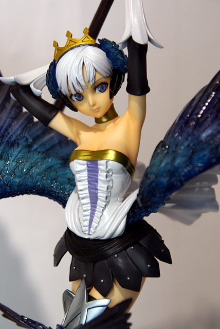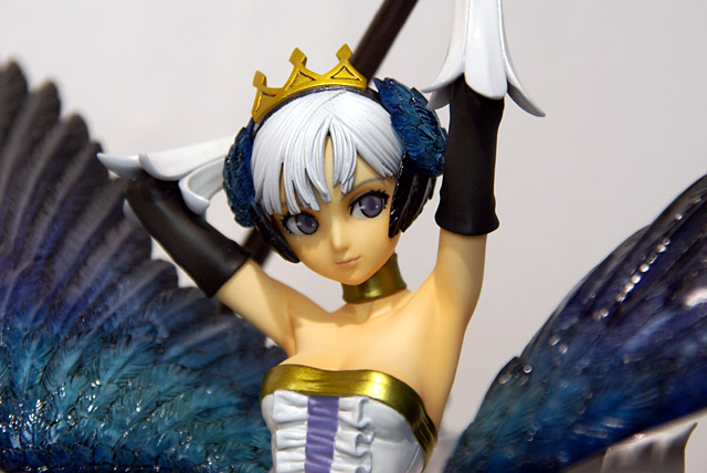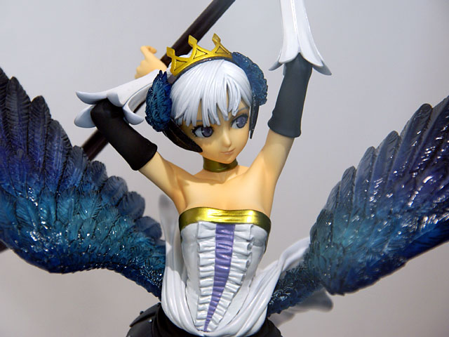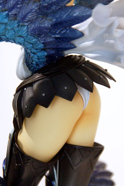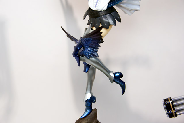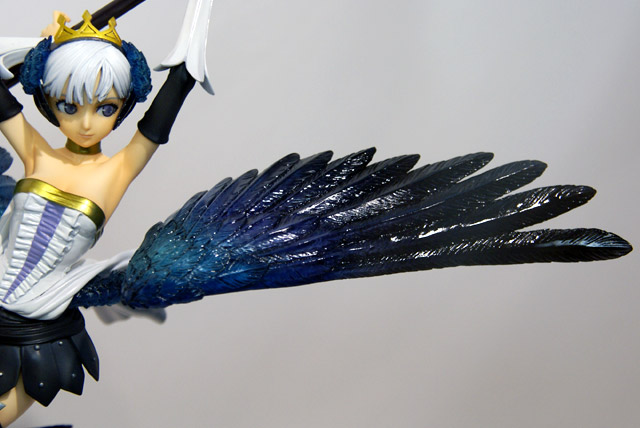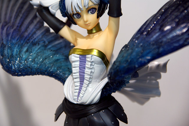 全身どこを見てもまったくスキのない造形で、とくに前髪の繊細な動きや、羽の美しいグラデーションが印象的で、フィギュアというよりは美術品を鑑賞している気分になります。