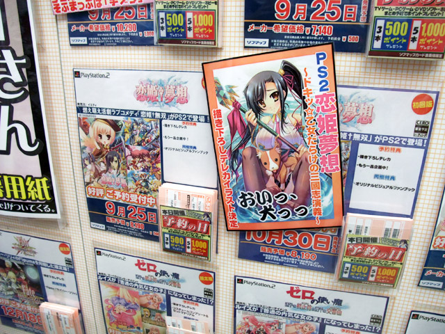 PS2「恋姫†夢想 -ドキッ☆乙女だらけの三国志演義 初回限定版」(SA)が10月30日に発売予定となっていますが、ソフマAM館では、ショップ特典テレカイラストが公開されてます。イラストは、女の子汁付+MOLOでフィギュア化もされた関羽が、水辺で座っている?イラストで、はいてなさそうなスカートを犬がおさえているからか、大きく「おいっ、犬っっ」と書かれていましたw