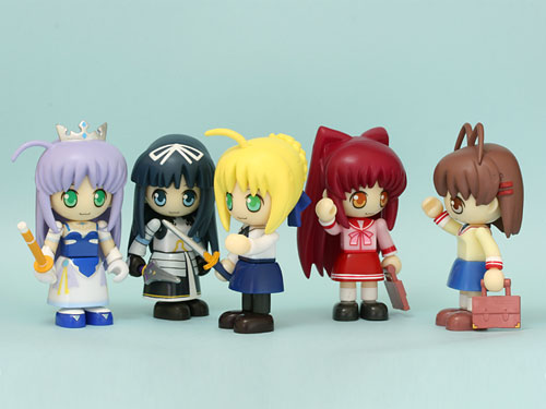 株式会社ユーモット/Silver Blitzから、2008年今秋発売予定という「きゃらフレンド プチリセ」のサンプル画像を頂きました!これは、「手足など全身10箇所が可動する他、足裏にマグネットを内蔵」という可動トレフィで、各パーツに共通性を持たせたみたいです。第1弾のラインナップはセイバー、上杉謙信、向坂環、古川渚、フィーナの5キャラと何気に豪華なのも魅力ですな!