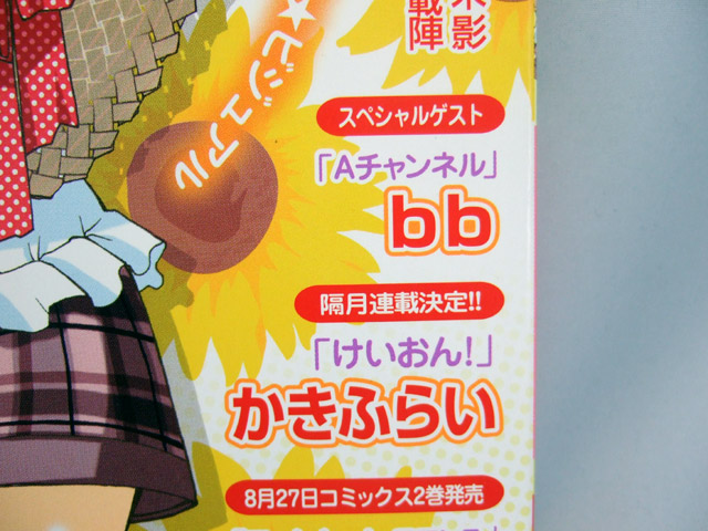 今月号には、スペシャルゲストとして、うちで「フィギュアのフィーたん 4コママンガ」を連載されているbbさんの、「小学星のプリンセス☆」の挿絵に続く、ふたつ目の商業誌掲載作品となる「Aチャンネル」が掲載されています!