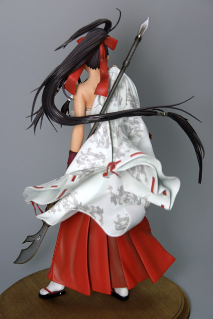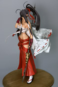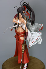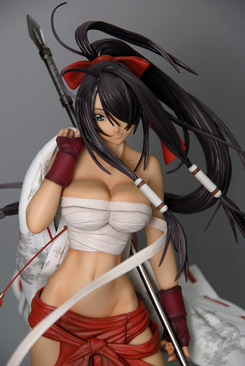 これは、以前ワンフェス2008夏で、レジンキャストキットの販売もあった、一騎当千のキャラ「関羽雲長」を、初回限定版には孫策伯符フィギュア(参考レビュー)の付属もあった、コミック「13巻」(AA)の表紙イラストを立体化したもので、ダイキ工業の商品説明によると