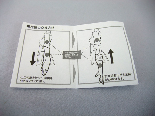 右の画像は付属パーツ一覧。ほか「魔術刻印が浮き出た左腕」の取り付け説明書も付属しています。