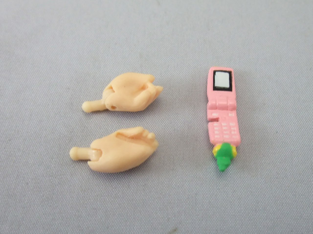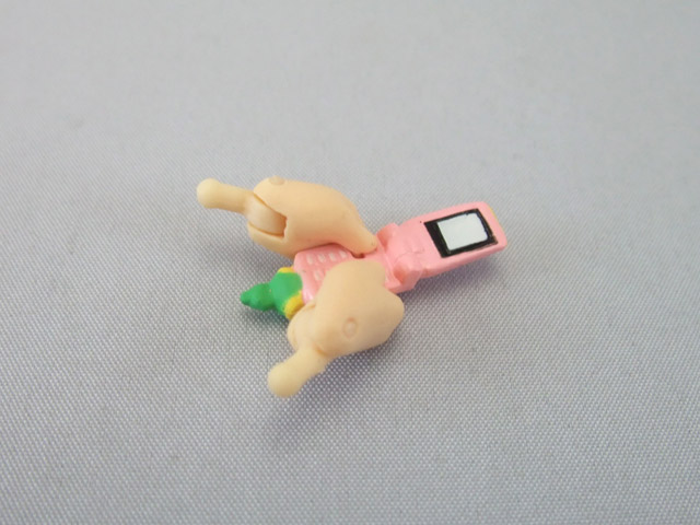 劇中でたびたび登場する携帯電話と、それをいじくる手首パーツが付属しています。