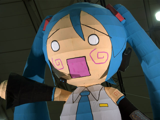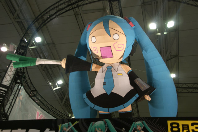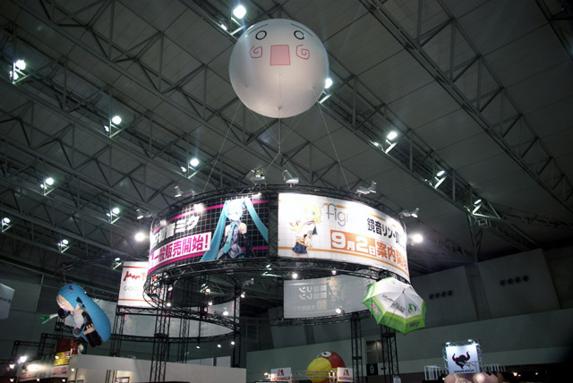 2008年8月30・31日開催のキャラホビ2008にいってきました!今回も、いつものイベントレポ同様、まずは、クイーンズブレイド新シリーズキャラ公開&フィギュア化発表日本最初のプラモデル展示等があった、会場の様子をざっとフォトレポートとしてお伝えします。左の画像は、figma シャナもあった、グッスマブースのはちゅねミクのはりぼてw その上にはバルーンはちゅねもw