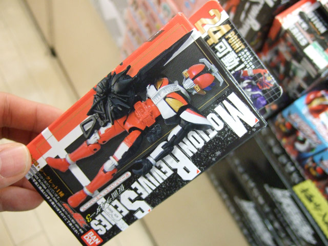全高100mmで、電王最終フォーム、ゼロノス最終フォーム、牙王、仮面ライダードレイク、仮面ライダーサソード、響鬼、+シークレット1の全7種。1BOX8個入り。