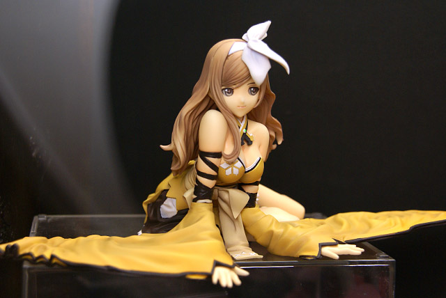 日輪の巫女・クレハが弊社からもいよいよ発売になります。ポーズは、ゲーム発売時の予約特典テレカの中でも特に人気の高かった図案を元にイラストでは見えなかった特徴的な形状の振袖の広がりやスラリと伸びた足まで再現。その清楚でいながら、色っぽくも感じさせるそのたたずまいは独特な雰囲気を醸し出しています。そしてスカートは、お約束のキャストオフ仕様となっております。