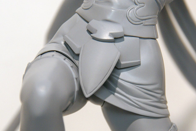 2008年8月3日に開催されたワンフェス2008夏のアルターブースでは、アルター「戦国ランス 戦姫」(AA)の無彩色サンプルが展示されていました。これは、アリスソフトのエロゲ「戦国ランス」のキャラ「戦姫」を立体化したものです。「片足を蹴り出して跳躍」という、ダイナミックなポーズなので、パンツもかなり豪快に見えてます!w ボリューム感のある乳も魅力的w
