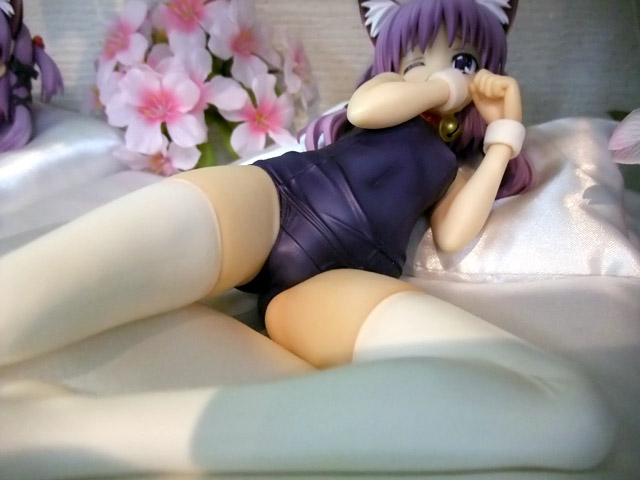 ファンが夢みたシチュエーションを忠実に立体化!フォー・リーヴスが贈る『萌えるフィギュア』!大人気恋愛シミュレーションゲーム「ToHeart2AnotherDays」より、奈々子ちゃんが『あの』コスチュームで立体化!ネコ耳&しっぽ、スクール水着、ニーソックス(絶対領域)、幼児体型・・・と、ふんだんに詰め込まれた萌え要素に加え、恥じらいの表情、脱ぎかけのスカート、寝姿・・・というたまらないシチュエーションの劇中イラストを再現いたしました!ベースにはクッション素材を使い、まるでベッドの上のような臨場感を表現しました。首にはラフ設定に描かれていた”首輪”を追加造型し、よりフェティッシュな感じに仕上げています!もちろん、スカートは着脱可能です。