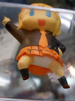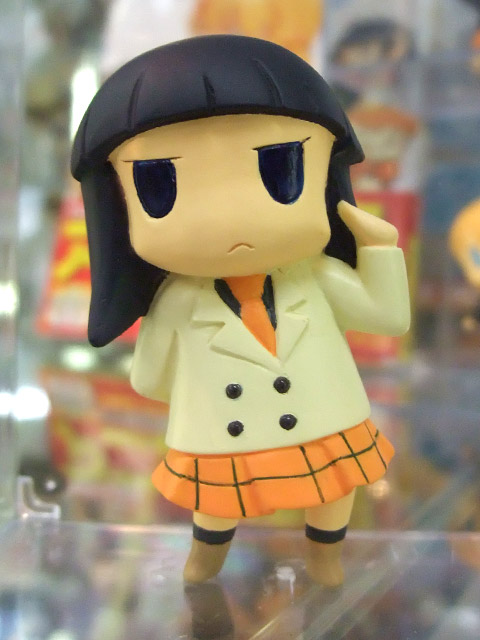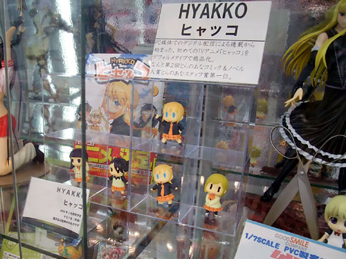 オーガニック「ヒャッコ」トレーディングフィギュアのサンプルが、とらのあな本店にて展示されています。これは、とらのPOPによると「なんと第2回とらのあなコミック&ノベル大賞とらのあなスタッフ賞第1位。」という、「ヒャッコ」のキャラ「虎子」「歩巳」「龍姫」「雀」の4キャラを、それぞれデフォルメイラストをモチーフに、トレーディングフィギュアにしたものです。