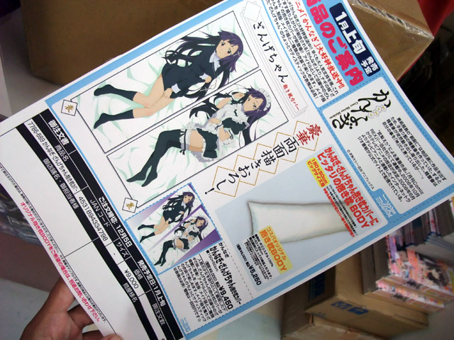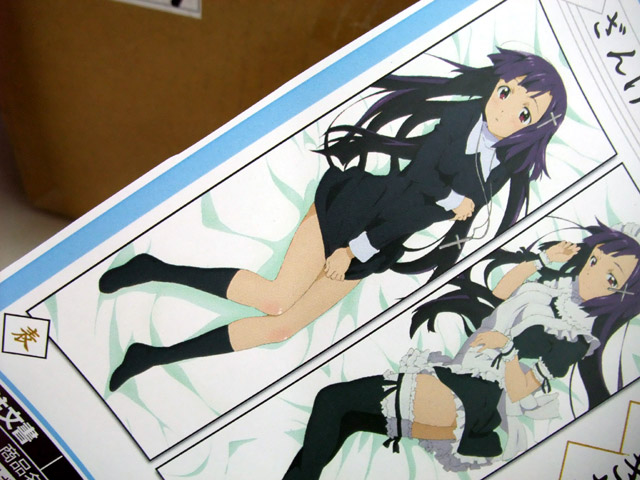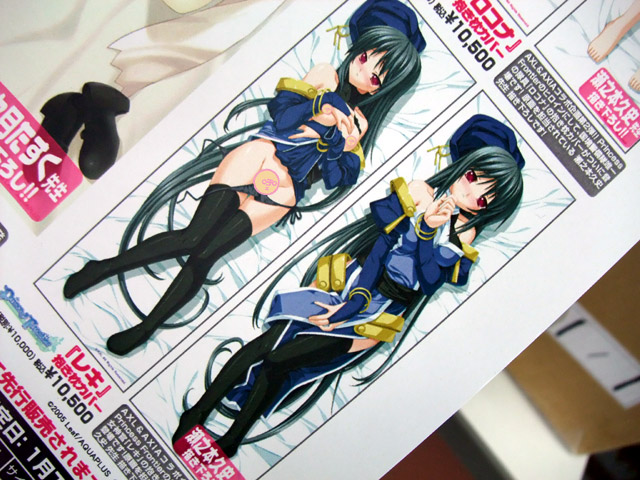 11月8日、ゲームシティで、アクシア「ToHeart2XRATED 向坂環 抱き枕カバーメイドVer.」や、コスパ「かんなぎ かんなぎ・ざんげちゃん抱き枕カバー」等の抱き枕カバーの告知準備をしていました。向坂環 抱き枕カバーメイドVer.は、表面はちょっとイタズラっぽい表情のメイドコスタマ姉で、裏面は恥ずかしそうにパンツをずり下ろしているイラストとなっていますw