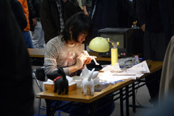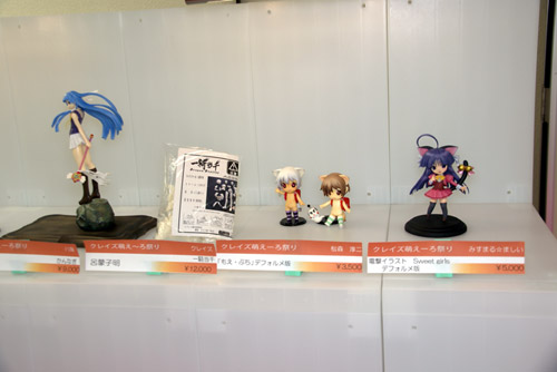 2008年11月9日、クレイズ萌え~ろ祭り2008が開催されました。これは、毎年開催されている、限定ガレキ・PVC完成品販売、作例展示等の「クレイズ」単体開催のイベントです。2007年の時も行われた、原型師さん達による「作品制作の実演」が今年も行われ、宮川氏の席は、多くの方がその制作する姿を見学されていました。まずはフォトレポートで会場の様子を。