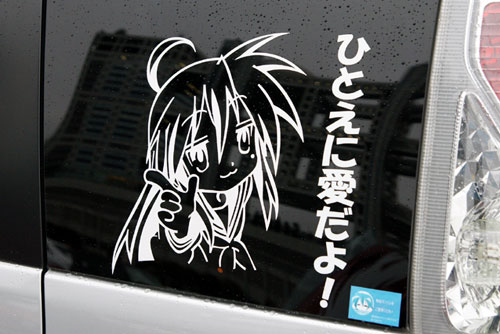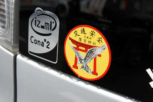 らき☆すた車に限らず多くの車で見かけた 鷲宮神社の交通安全スッテカー