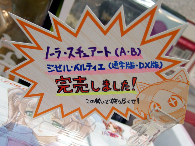 ノーラAタイプ2個、サンディ通常2個、DX1個、ジゼルDX1個の在庫を確認と、アキバではほぼ完売状態の店舗が多くなっていました。