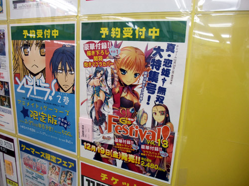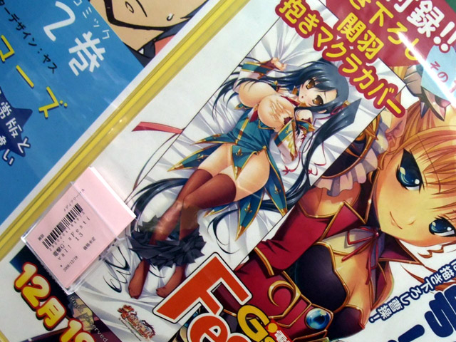 2008年12月26日発売予定のBaseSonのエロゲPCソフト「真・恋姫†無双」(AA)の特集号となる、雑誌「電撃G’s Festival Vol.13」(AM)が12月19日発売予定となっています。ゲーマーズ本店では、告知POPが展開されていて、付録のひとつ「主人公・関羽 抱きマクラカバー」のサンプル画像が掲示されています。イラストは乳丸出しではいてないものでしたw