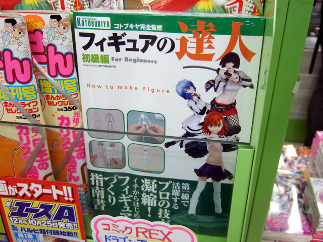 ムック本「フィギュアの達人 初級編」(AA)が、アキバでは14日くらいに入荷していたみたいです。これは、フィギュアメーカーのコトブキヤが「自分でもフィギュアを作ってみたい、という初心者のための入門書」というコンセプトで発行した、フィギュア制作のHow to本。とらのPOPでは「これを読めばフィギュアマイスター!!(の道も近し・・・!)」と書かれてました。