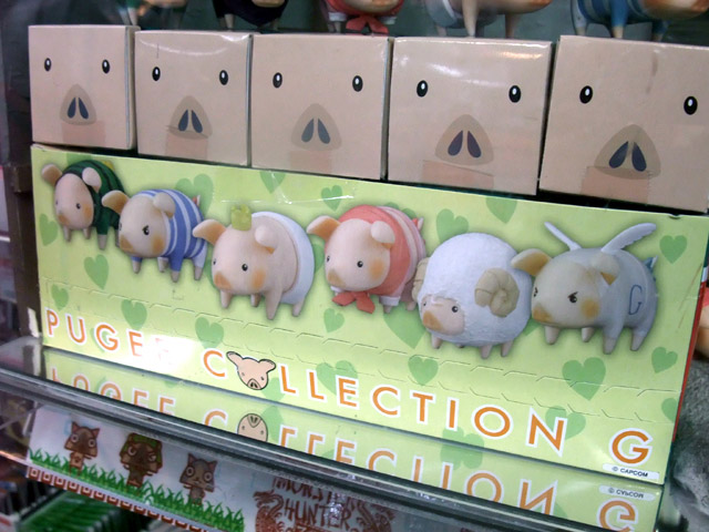 “プーギー”もG級になりました~!?今や国民的人気ゲームとなった『モンスターハンターポータブル2nd G』。ゲーム中でハンターと供に暮らす癒し系マスコットキャラクター”プーギー”がトレーディングフィギュアになりました。その名も【モンスターハンター プーギーコレクションG】!”G”の名前はダテじゃない!!2008年3月に発売されたトレーディングフィギュア”プーギーコレクション”が装いも新たに再登場です!!ラインナップは「思い出ストライプ」「魅惑のピンク」「天使のレオタード」「緑と黒の衝撃」「はだかの王様」「眠りを誘う白」の6種類のプーギーに”怒ったよVer.”が追加!!(いわゆる表情違いです)”つぶらな瞳のプーギー””怒った瞳のプーギー”どちらもラブリーですよ。さらにシークレットとして知る人ぞ知るあの”プーギー”がコレクション初登場!!それが何かかは買ってからのお楽しみ!