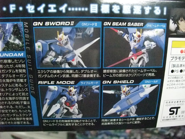 バンダイ「1/100 機動戦士ガンダム00 2nd SEASON ダブルオーガンダム」(AA)のパッケ表とや側面の解説など。