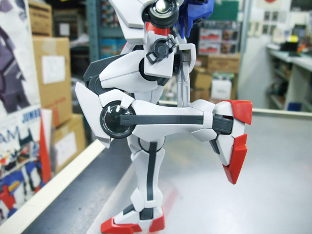 ライトユニット構造(LED)を使用し、機体特徴でもある肩のGNドライブを”光効果”で再現!TVスタイル、演出を意識し、劇中でのポージング再現度を追及。パーツ分割箇所を考慮して、組立てやすさもUP!特徴的な腕・脚レンズ部はクリアパーツ素材(GP)で再現。GNドライブは飛行時の再現のため、基部を前後・上下に可動させ、バックパックへとスムーズに連結。肩関節には引き出し機構を取り入れ、可動範囲を拡大させ、劇中での様々なアクションポーズを再現可能。股関節に新機構「スイングアクション」を採用し前後可動、脚前後振り可動の動きと重心回転の動きより更なるアクションポージングがキマる。腕の関節には2重関節を採用。剣の構え、ライフルの構えなどとキービジュアル再現に欠かせない可動腕部の構造にもこだわりが。胸部を回転させ、腰ダメポーズを意識させる構造とし、より自然な見映えを表現させる。ホイールシール付属。アクションベース1へのジョイント対応(別売り)。