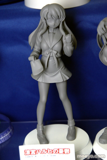 11月19日、都内某所にて開催された店舗向け商談会「第23回ミヤザワ 秋の商売繁盛応援セール(新製品発表展示会)」のクレイズ、ウェーブ、アイズ・プロジェクト、ダイキブースの様子をお伝えします。画像はクレイズ「らき☆すた 柊かがみ」(AA)のサンプル展示の様子。ウェーブでは「朝比奈みくる 制服Ver.」「朝倉涼子 体操服Ver.」の無彩色サンプルの展示が。