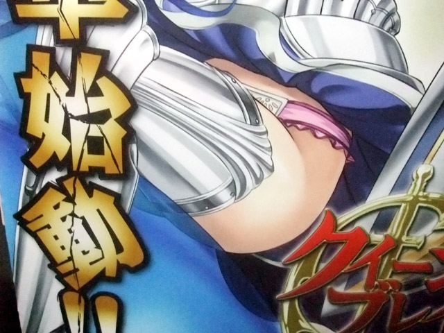 関連:クイーンズブレイド – 公式/クイーンズブレイド(アニメ) – 公式/クイーンズブレイド – Wikipedia/えぃわのLeimu – えぃわ氏サイト/「クイーンズブレイド リベリオン アンネロッテ」告知POPで「鎧破壊」 パンツも見えてました