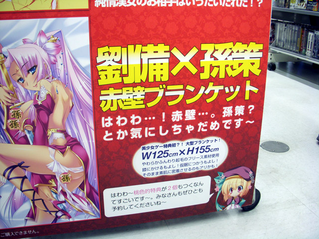 「劉備×孫策 赤壁ブランケット」は、「はわわ・・・!赤壁・・・。孫策?とか気にしちゃだめです~」と書かれていたソフマ掲示のPOPによると