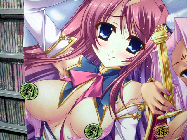 以前、はいてない抱き枕カバー付属の特集雑誌「電撃G’s Festival Vol.13」が12月19日発売予定とお伝えした、12月26日発売予定のBaseSonのエロゲ「真・恋姫†無双 ~乙女繚乱☆三国志演義~」(SA)ですが、ソフマップAM館で、ショップ特典「劉備×孫策 赤壁ブランケット」のサンプル展示が開始してます。サンプルでは隠されていましたが、乳首丸出しのようですw