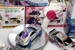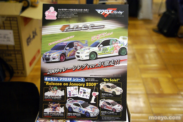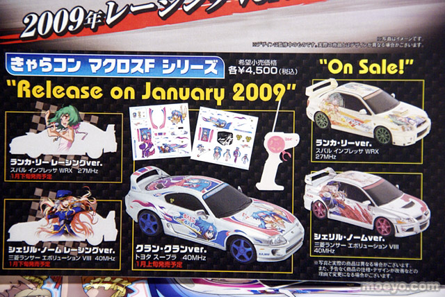 11月19日、都内某所にて開催された店舗向け商談会「第23回ミヤザワ 秋の商売繁盛応援セール(新製品発表展示会)」のシー・シー・ピー、タカラトミー、アゾンブースの様子をお伝えします。画像は、シー・シー・ピー「きゃらコン マクロスF クラン・クラン トヨタ スープラ」(AA)のサンプル展示の様子。他、ランカとシェリルのレーシングVer.の告知POP等も。