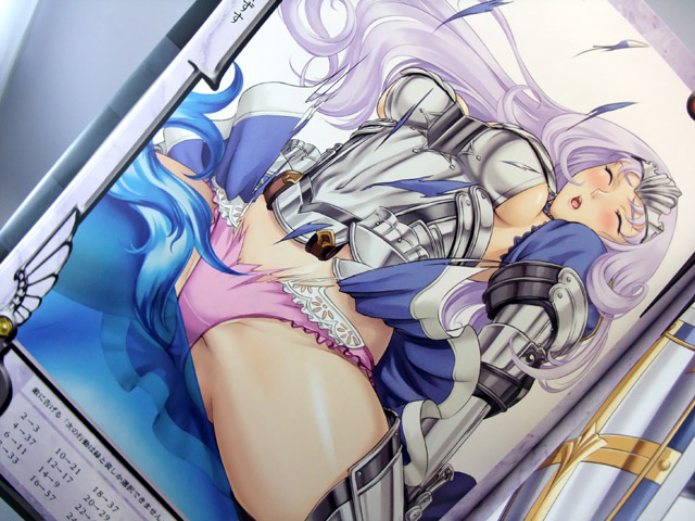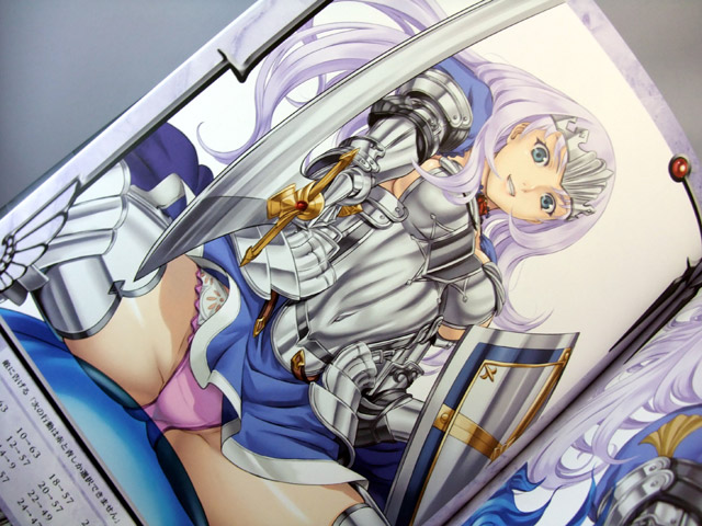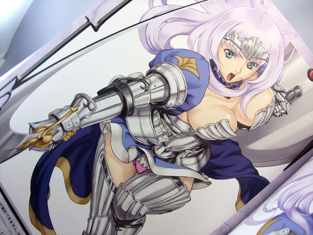 以前お伝えした告知POP通り、11月27日に、K-BOOKSなどのアキバのいくつかの店舗で対戦型ビジュアルブック「クイーンズブレイド リベリオン 叛乱の騎士姫アンネロッテ」が発売されました。告知POPでパンツなこともお伝えしましたが、本誌でも剣振ったらパンツ、騎乗中でもパンツ、攻撃くらったらパンツと、24/32がパンツ見えていて、どうもパンツ担当?w