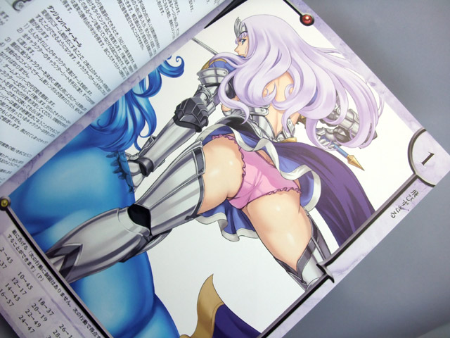 表紙をめくると、暗黒面に取り込まれたような、きつめの目つきをした黄金の鎧の、2Pキャラ「狂騎士アンネロッテ」のイラストが。